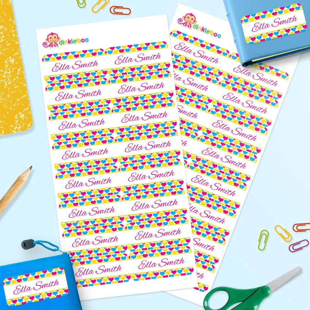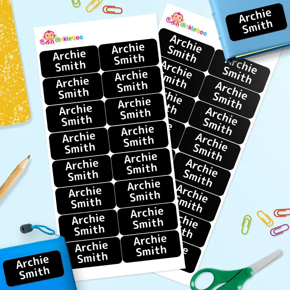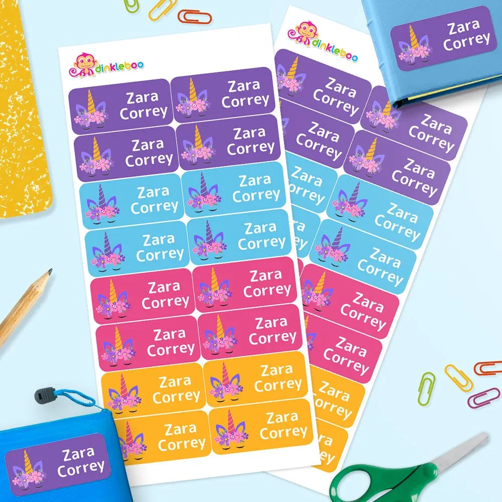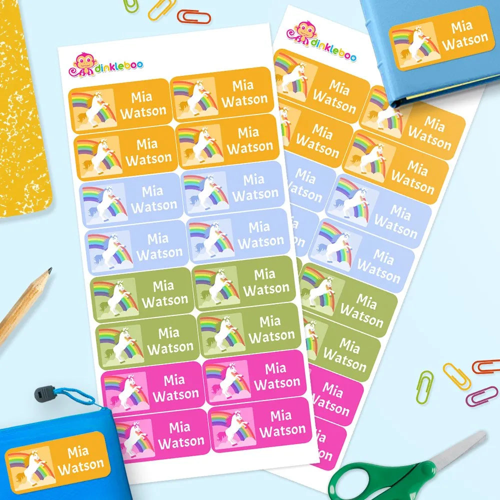 Kids' name labels are perfect for giving a personalized touch your child's belongings. Custom name labels allow you to stick labels on drink bottles, books, lunch boxes and much more. Our personalized labels are dishwasher safe and we have so many custom labels to choose from! Personalize and organize your kids' stuff for all of your child's needs!