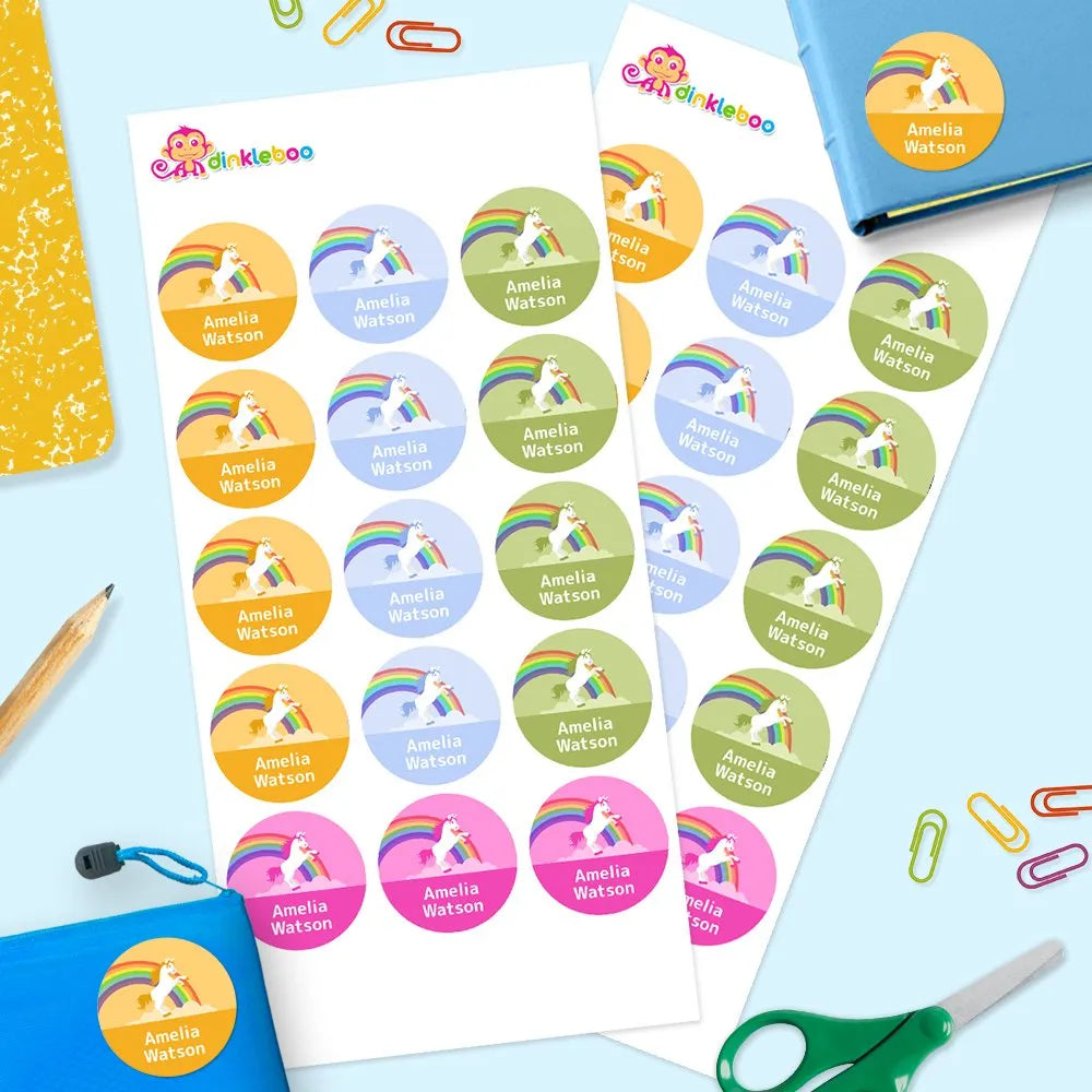 Rainbow Unicorn Round Name Labels